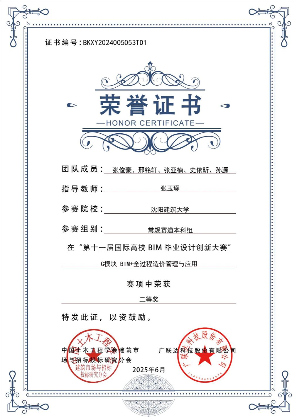 通过成本动态管控做到充分准确、调整及时,能准确反映工程目标成本当前状况,在工程实施过程中,借助BIM模型和平台工具,进行全过程的动态成本管理,确保设计变更、工程洽商、现场签证等事项的实时控制,减少了成本超支的风险。团队深入了解了BIM技术在全过程造价管理中的应用,并提升了实际操作能力。通过明确分工和定期沟通,团队顺利完成了各项任务.此次参赛使我们认识到BIM技术的优势,未来将会更加关注如何在工程管理中深入运用BIM,实现更高效的项目管理。